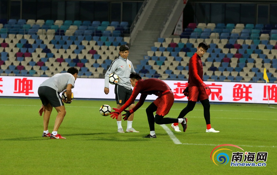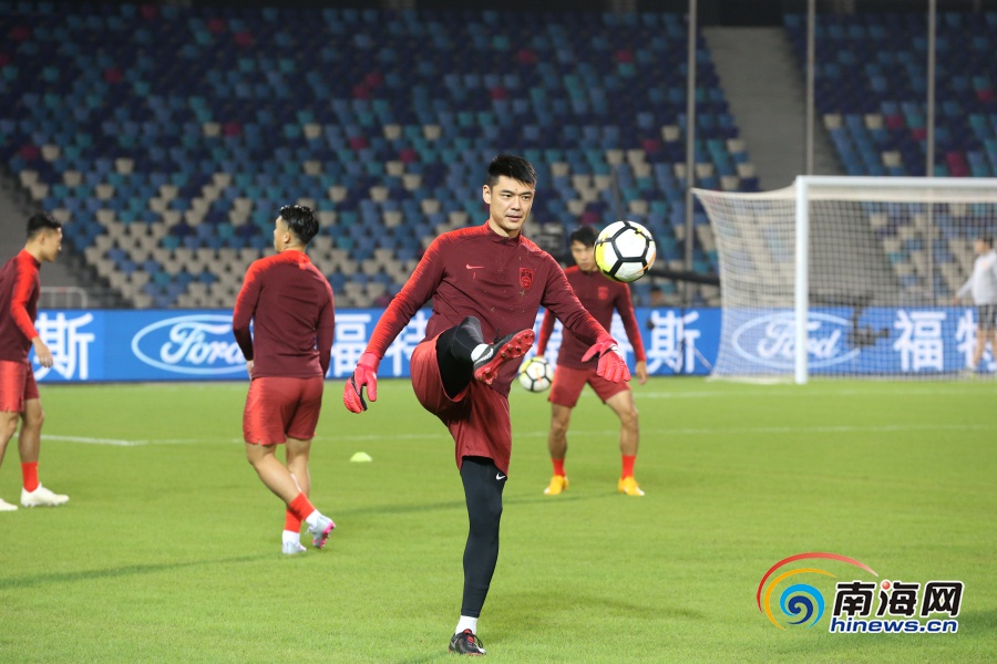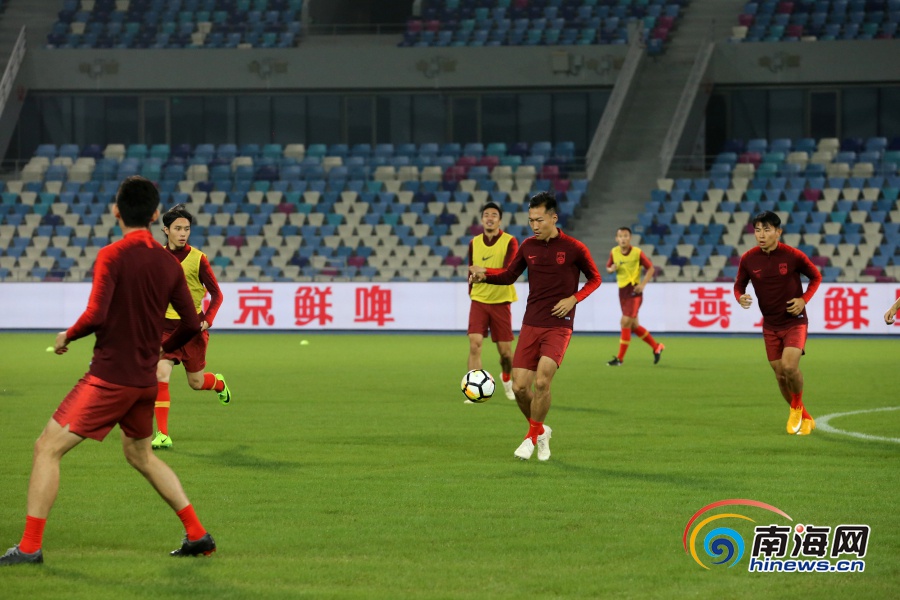 國足隊員進入五源河體育場進行踩場訓練。南海網記者陳望攝