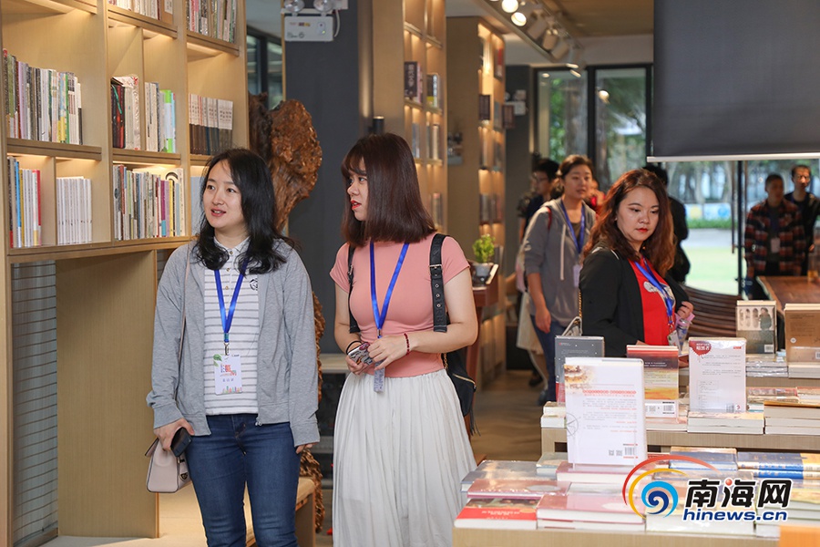 全國融媒代表參觀萬寧九里香書屋。南海網記者李昊攝