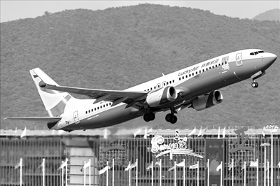 飛機從三亞鳳凰國際機場起飛。