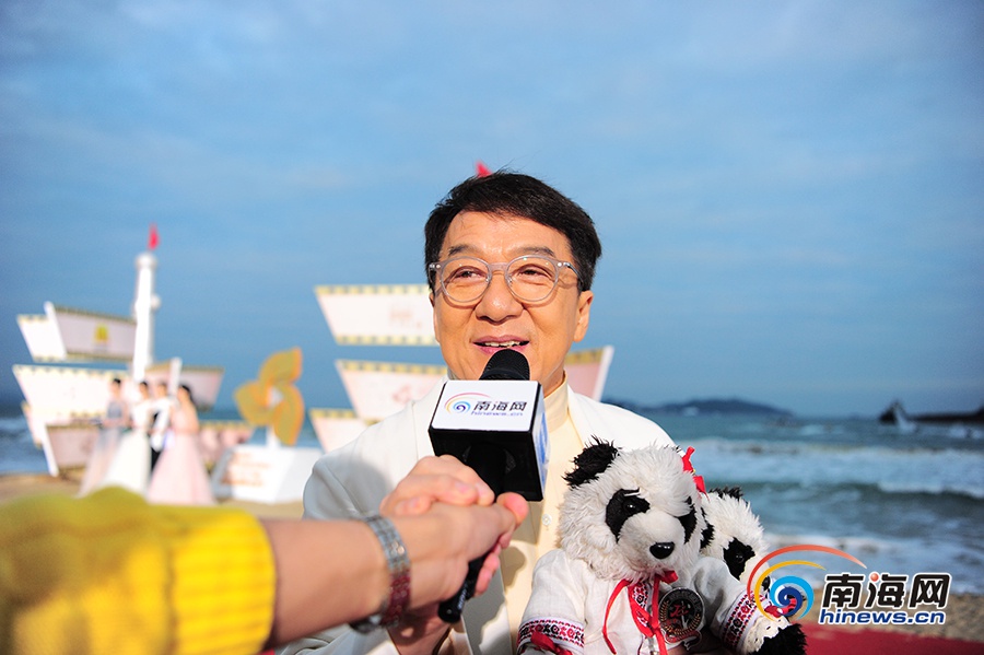 12月16日晚,首屆海南島國際電影節閉幕式紅毯秀在三亞舉行,電影節形象大使成龍接受南海網記者采訪。南海網記者沙曉峰 攝
