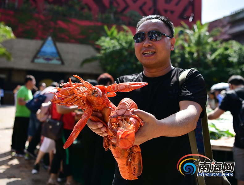 游客展示剛挑選的龍蝦。南海網記者沙曉峰攝