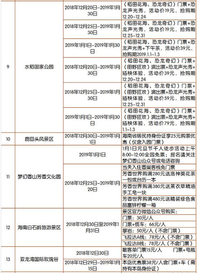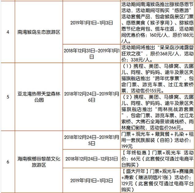 優(yōu)惠詳情見2019年元旦期間海南旅游景區(qū)優(yōu)惠活動(dòng)匯總表。