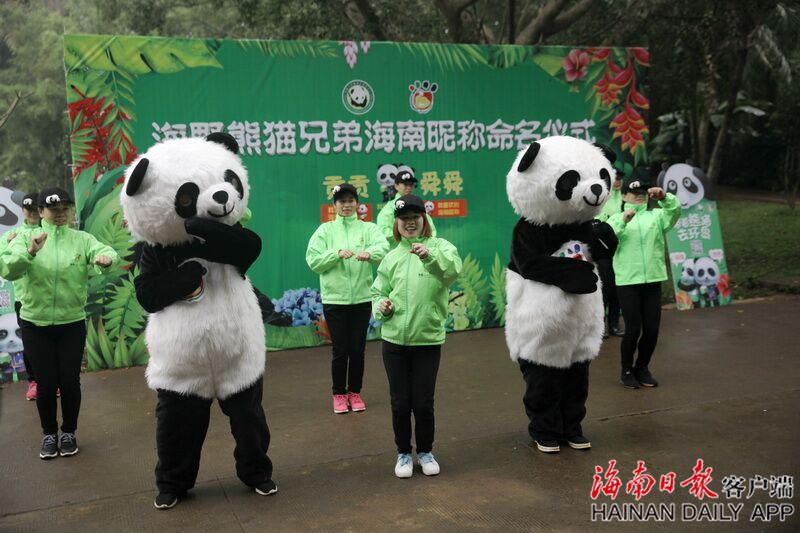 ↑熊貓兄弟的海南“昵稱”命名儀式現(xiàn)場(chǎng)。 海南日?qǐng)?bào)記者 張茂 攝