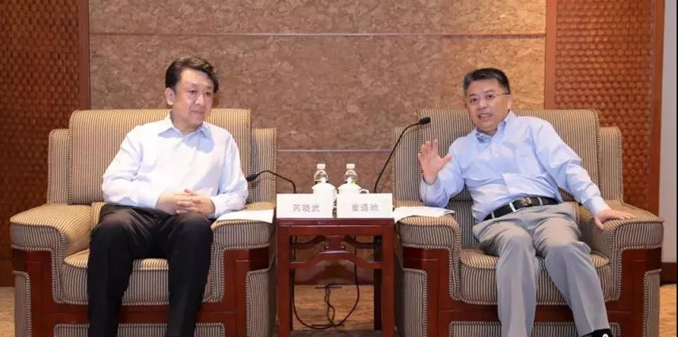▲2018年11月30日,省委常委、市委書記童道馳會見中國電子信息產業集團董事長、黨組書記芮曉武一行。