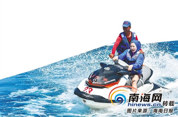 游客在陵水分界洲島景區體驗海上游樂項目。本報記者 武威 通訊員 童國強 攝