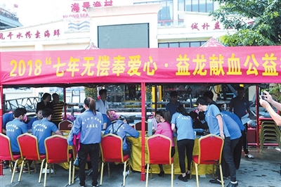 圖為益龍海景漁村員工獻血現(xiàn)場。