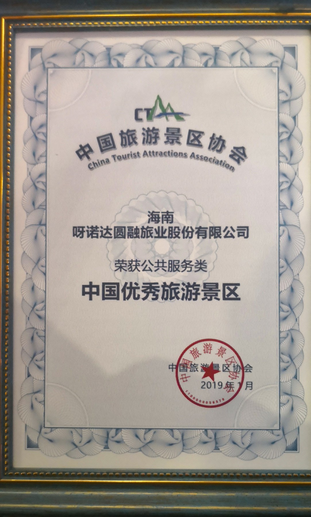 2019年1月9-10日,中國旅游景區協會在廣東韶關舉辦了“中國旅游景區協會二屆四次理事會暨第三屆中國景區創新發展論壇”,在中國優秀旅游景區/服務商表彰活動中,呀諾達雨林文化旅游區榮獲“公共服務類”中國優秀旅游景區殊榮。