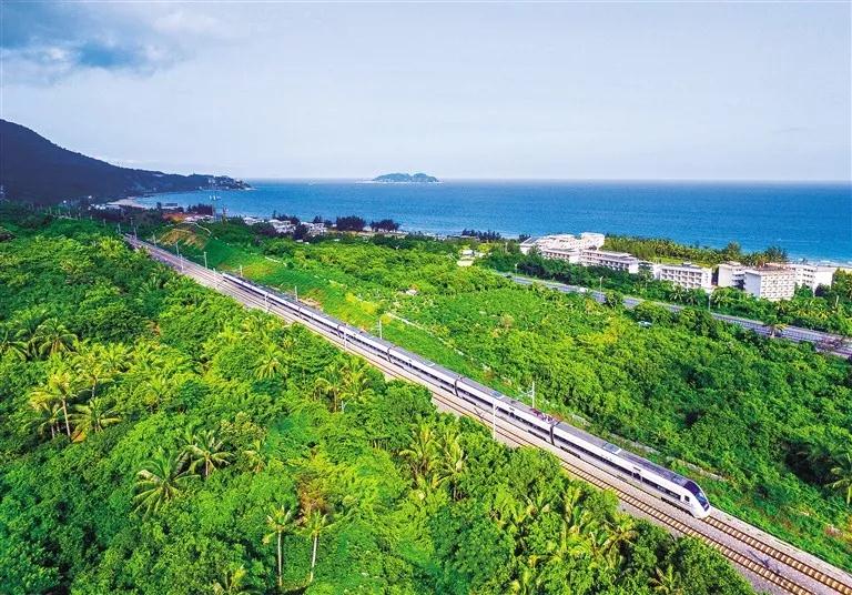↑動(dòng)車(chē)駛過(guò)陵水香水灣。