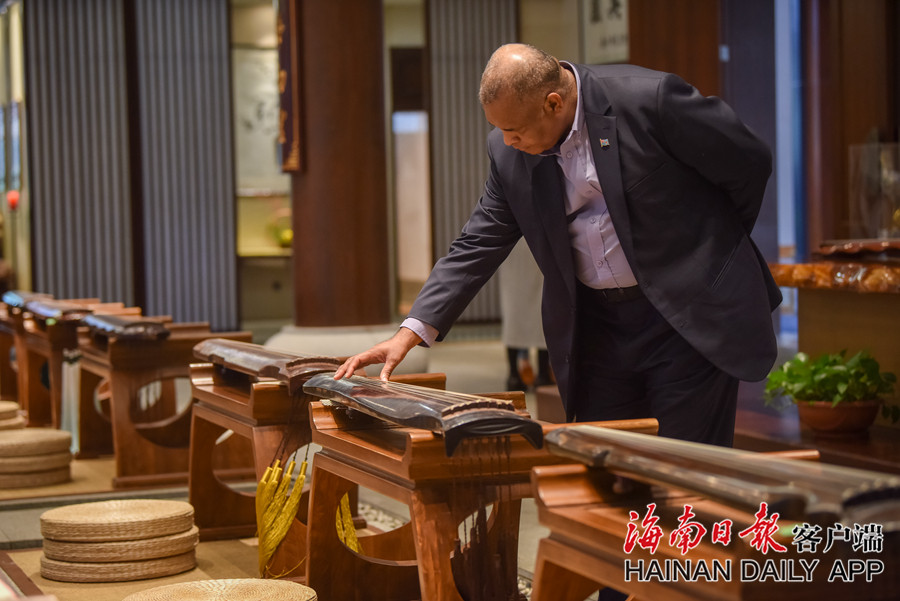 ?2019年1月17日,一位駐華使節在感受古箏文化。海南日報記者袁琛 攝