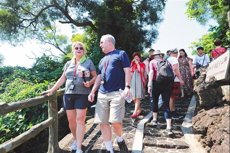 ↑外國游客在雷瓊海口火山群世界地質公園觀光游覽。海南日報記者 張茂 通訊員 李娜 攝