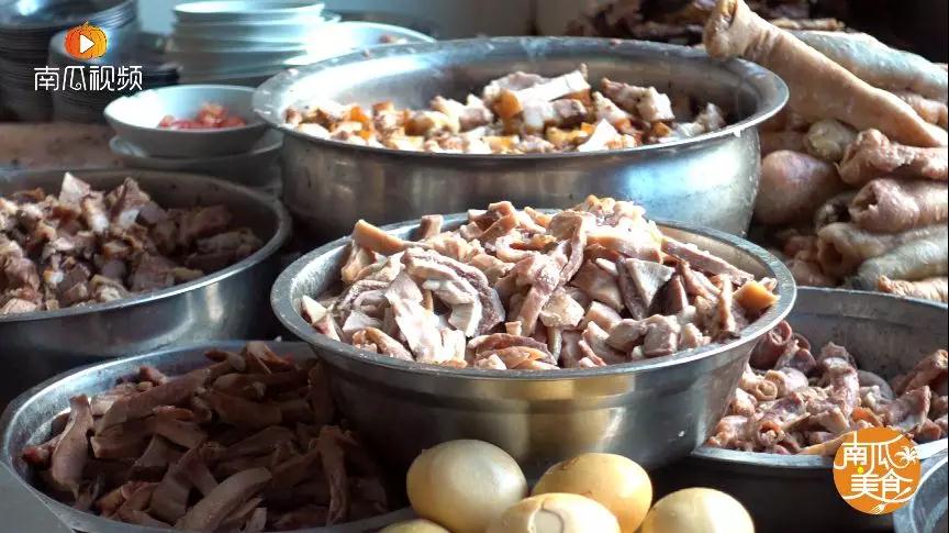 簡陋的玻璃櫥窗邊擺放著豬腳、豬尾巴、牛腩、牛雜之類的特色美食↓↓↓