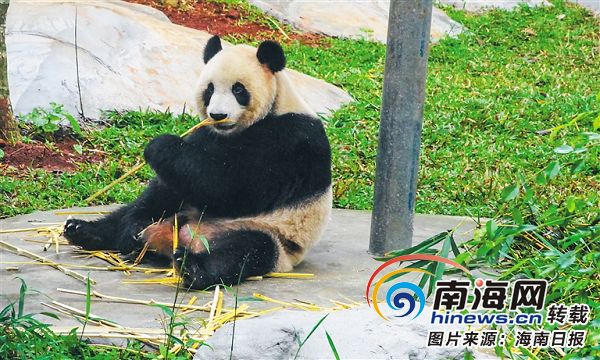 海南熱帶野生動植物園的熊貓。本報記者 張茂 攝