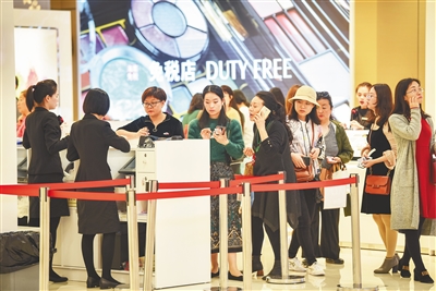 ?市民游客在位于海口市日月廣場(chǎng)的海口免稅店選購(gòu)商品。本報(bào)記者 袁琛 攝