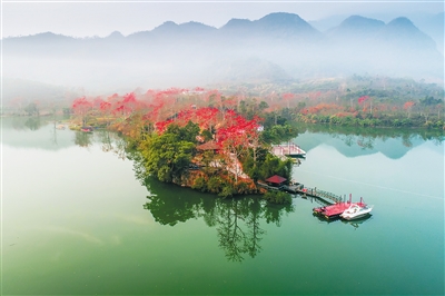 木棉盛開山水間。 (昌江縣委宣傳部供圖)