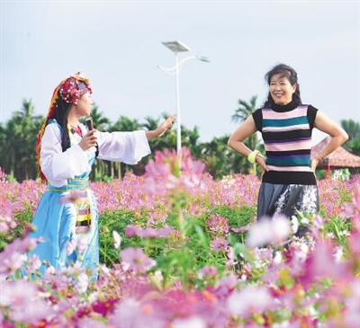 “一步一景,一步一花,好看極了。”連日來,眾多游客漫步在瓊海市嘉積鎮龍壽洋萬畝田野公園,這里地毯式、階梯式種植與節點造景、空間立體化布展相結合,構建出一片“流動”的花海,其中最多的當屬五彩繽紛格桑花。當游客舉目四望,紅、粉、白、紫等各色格桑花點綴在綠草之上,令人心曠神怡。