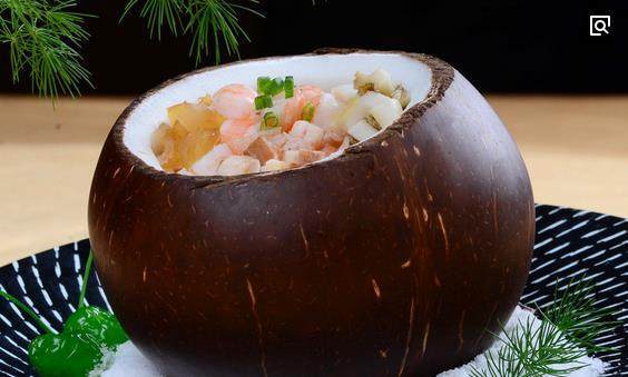 椰子飯 當(dāng)細(xì)糯的米香遇上清淡的椰子,就誕生了椰子飯,光是聽到名字就覺得香甜可口。在海口,食用此種以椰子肉為底的船形小食品,是當(dāng)?shù)厝嗣衿砬笮腋5南笳鳎彩茄缯?qǐng)貴賓和親朋好友的上等佳品。所以到海口的游客都會(huì)嘗嘗這味道和寓意都極好又極具特色的椰子飯
