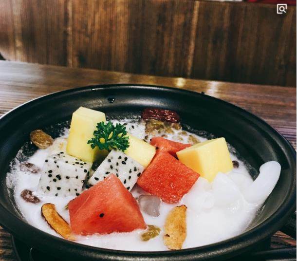 清補(bǔ)涼 清補(bǔ)涼主要根據(jù)當(dāng)?shù)氐臍夂颍盍?xí)慣,采用的是消暑降溫的原料。一般清補(bǔ)涼的原料至少有10多種,比如花生、紅豆、綠豆、通心粉、新鮮椰肉、紅棗、西瓜粒、菠蘿粒、鵪鶉蛋、涼粉塊、珍珠、薏米、芋頭等。海南的清補(bǔ)涼攤點(diǎn)大多設(shè)在路旁,攤主們擺放一小櫥窗,旁邊擺上一個(gè)保溫冰桶、幾套塑料的椅子和木桌,加上清補(bǔ)涼攤的小櫥窗里排滿塑料碗,碗里面分別裝著黃、紅、綠等各種原料。