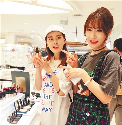 2月20日,參加“網(wǎng)紅伴游,說走就走”海口旅游體驗(yàn)活動的網(wǎng)紅主播在??谌赵聫V場免稅店向粉絲推介免稅商品。 本報(bào)記者 張茂 通訊員 麗麗 攝