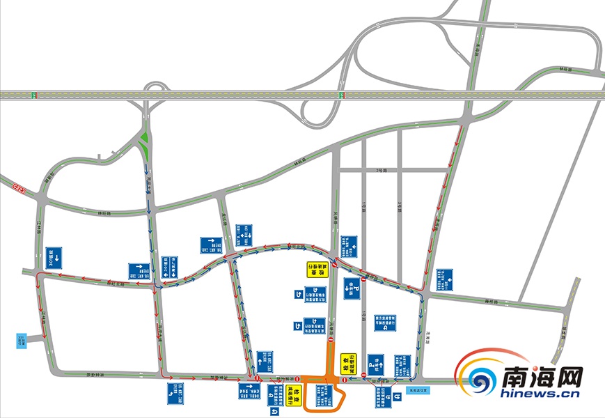 2019年度第五賽季國際汽聯(lián)電動方程式錦標賽三亞分站賽活動期間,由于海棠北路作為比賽賽道管制,造成海棠北路由北向南方向道路中斷,交警部門根據(jù)道路路網(wǎng)實際,實行以下引導通行措施:
