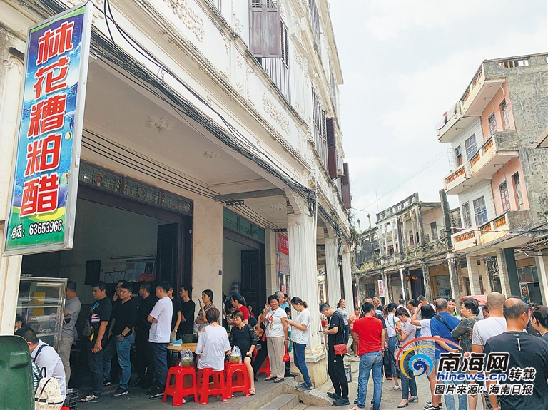 3月19日,在文昌市鋪前鎮一家糟粕醋店前,從??谶^來吃糟粕醋的市民游客排起長隊。海南日報記者 蘇慶明 攝