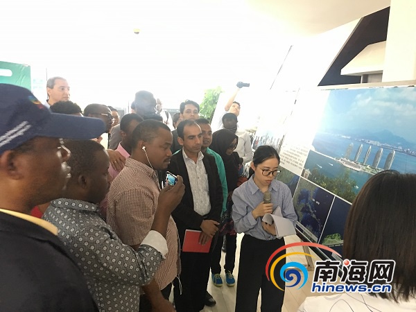 亞非49國主流媒體團在三亞鳳凰島國際郵輪碼頭參觀采訪。南海網記者 胥圣蘭 攝