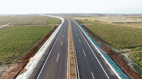 據了解,該路線全長12.119公里,設計速度采用60km/h,一般路段采用二級公路標準建設,雙向兩車道,路基寬度16m;終點銜接路段采用一級公路標準建設,雙向四車道,路基寬23m。