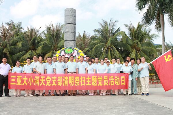 在崖州區革命烈士陵園紀念碑前,大小洞天黨支部成員通過默哀、鞠躬、向革命烈士敬獻花圈、重溫入黨誓詞等儀式表達了對革命先烈的深切緬懷和崇高敬意。