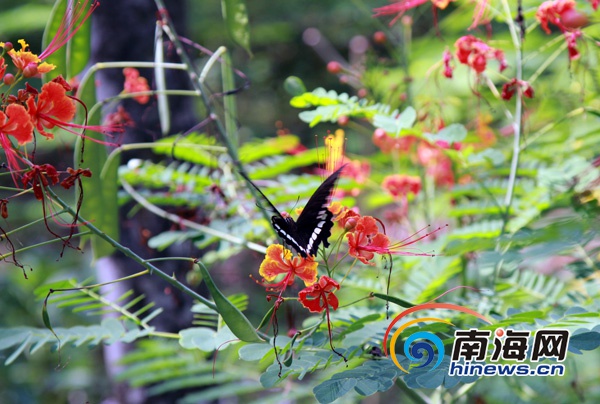 在海南熱帶植物園,除了千姿百態(tài)的樹外,還有五顏六色花。有雞蛋花、金鳳花、葉子花、紫荊花;有木棉、扶桑、杜鵑、菩提;這些花一年四季花飛花落,常謝常開。還有奇形怪狀的果,有菠蘿蜜、神秘果、西番蓮、番木瓜,有芒果、可可、香蕉、芭蕉;這些果春夏秋冬掛滿枝頭,常結(jié)常鮮。不論你何時來何時到,這些花都會綻開最美麗的笑臉,這些果都會奉上最甘甜的芬芳。