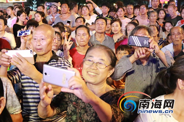 一曲唱罷,這些演員并沒有離開舞臺,他們又為海南經典民歌《久久不見久久見》當起了伴奏。雖然大家對于這首歌早已耳熟能詳,可在特色器樂的伴奏下,動聽的民歌更加婉轉深情,悠揚的旋律吸引眾多市民游客齊聲合唱。