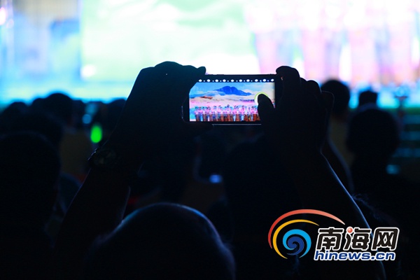 一位觀眾用手機拍攝五指山市老干部之聲合唱藝術團帶來的合唱表演。南海網記者 葉子青 攝