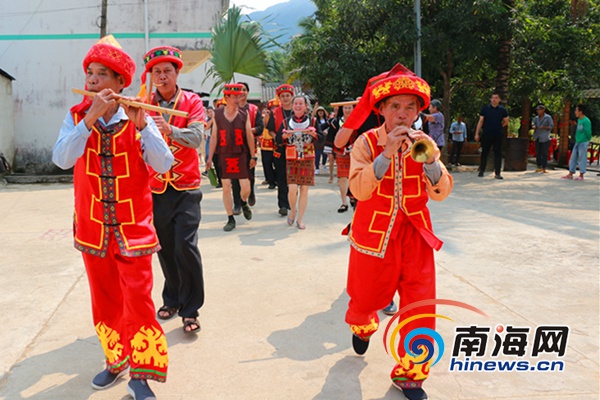 4月7日,五指山市在毛納村舉行黎族傳統(tǒng)婚俗展示。南海網(wǎng)記者 葉子青 攝