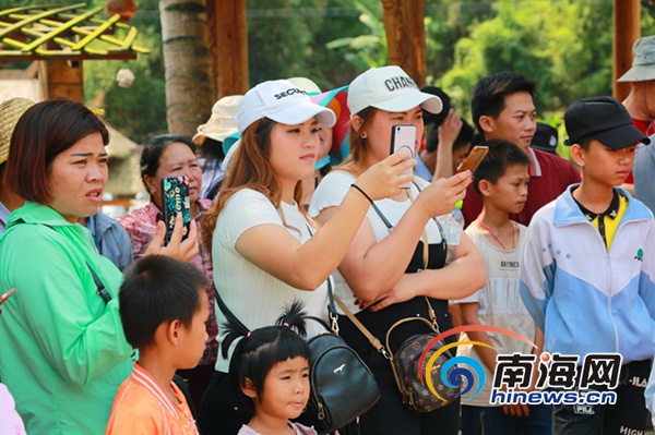 市民游客拿出手機(jī)拍攝記錄五指山“三月三”節(jié)慶活動的精彩瞬間。南海網(wǎng)記者 葉子青 攝