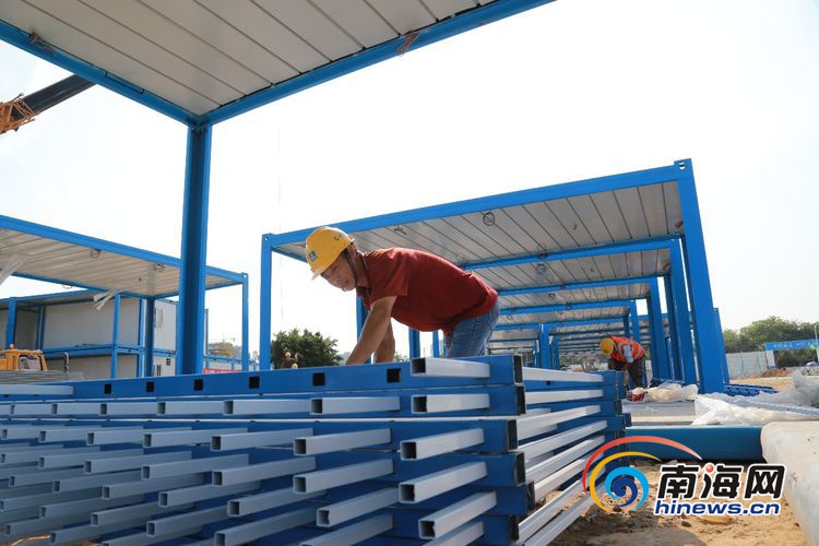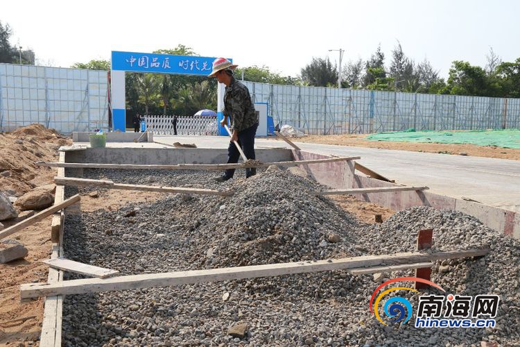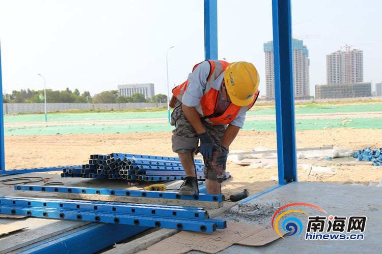 ??谑袊H免稅城項目施工現(xiàn)場。秀英區(qū)委宣傳部供圖