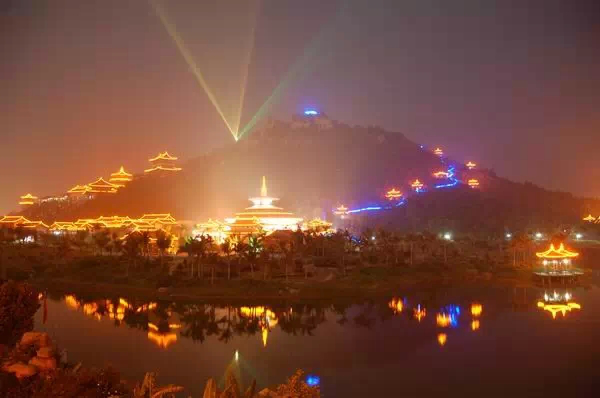 這是定安文筆峰盤古文化旅游區,這里的夜景也是一絕,絕對讓你驚艷。