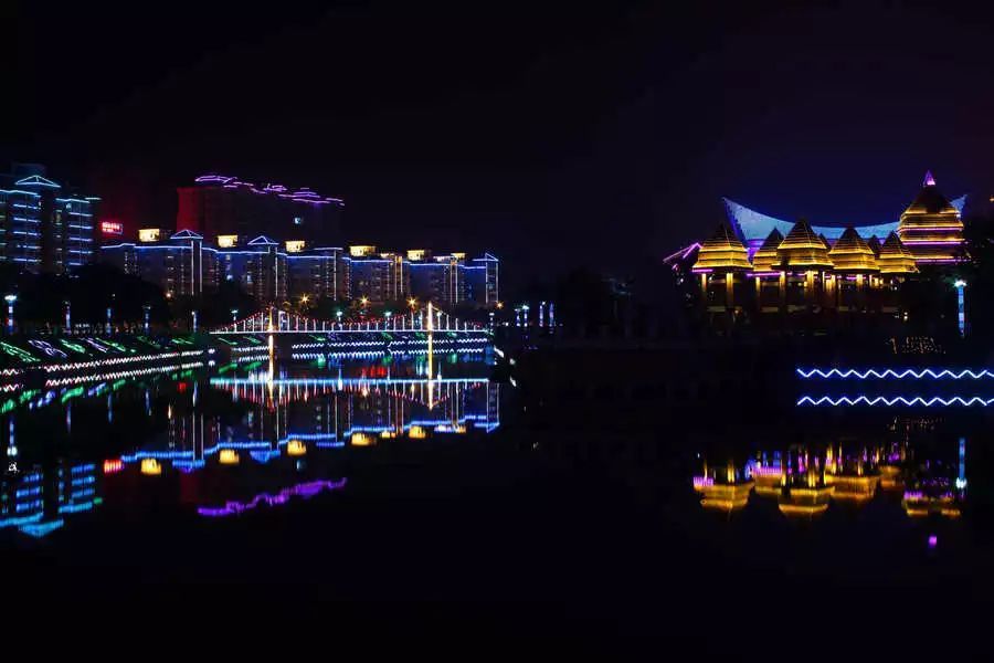 瓊中的夜景,很美!在這么美妙的夜晚,牽著TA的手,走在百花廊橋中,沉浸在曼妙的夜色里……