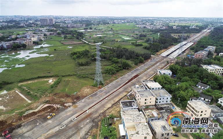 這是記者日前航拍的??谝4蟮姥娱L線項目施工現場。據悉,椰海大道延長線項目位于海口市江東組團沿江生活片區,南起瓊山大道(海瑞大橋東岸),北至白駒大道,全長2744米。目前,項目路基工程、排水工程已完成95%以上。南國都市報記者 汪承賢 攝
