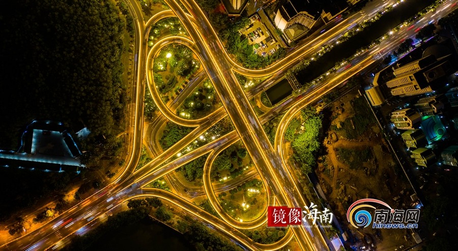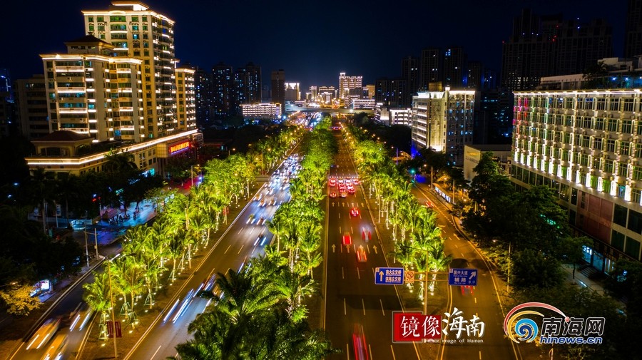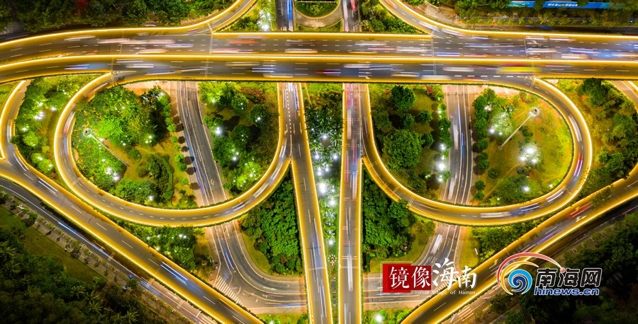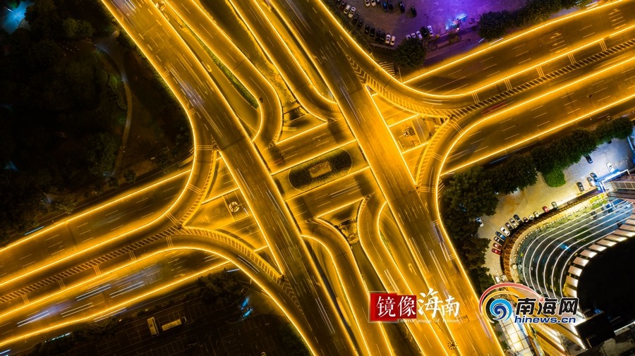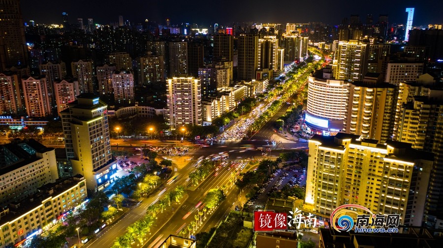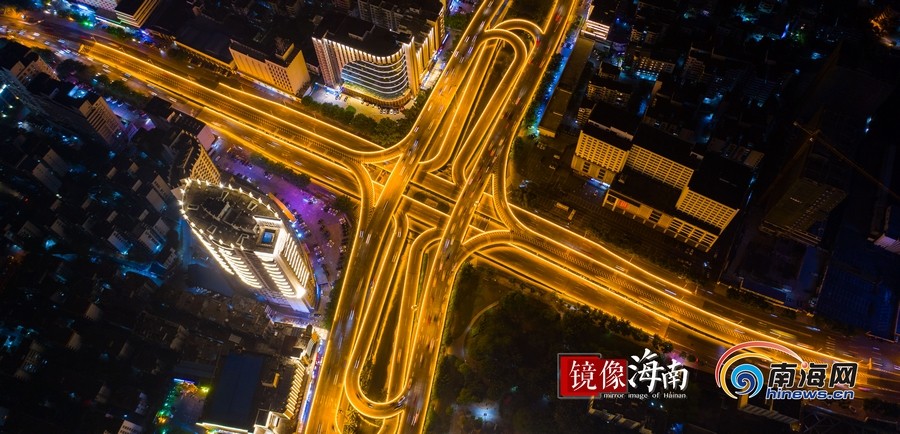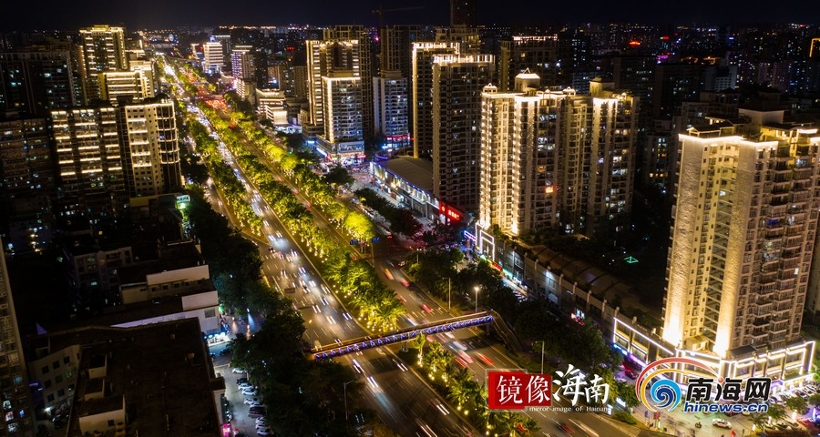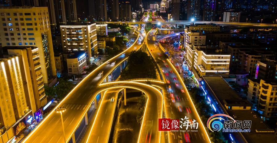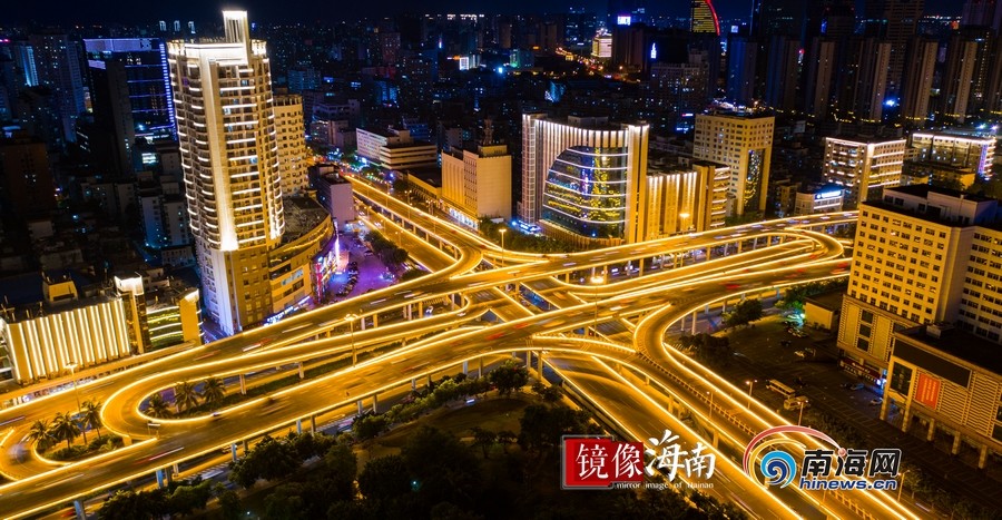 濱海大道與龍昆路交匯出海口最靚麗的夜色。