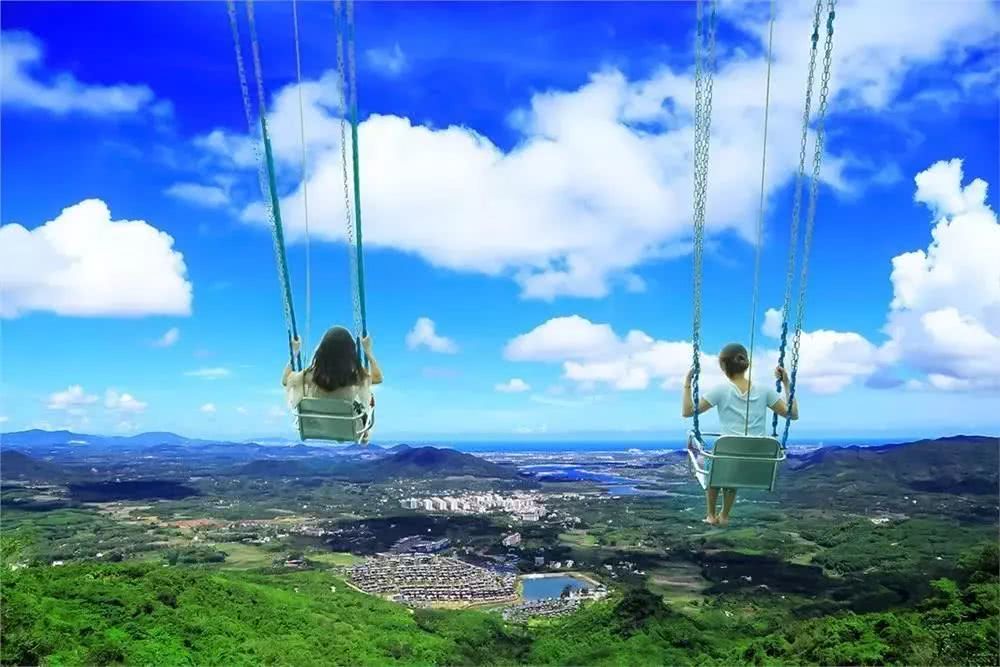 秋千蕩到最高點(diǎn)時(shí)身體完全在懸崖之外,仿佛沖上云霄,十分刺激