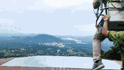 從懸崖邊蕩出去,視線范圍內(nèi)沒有任何阻攔,玩的就是心跳。如果天氣晴好,遠(yuǎn)處的海棠灣美景仿佛觸手可及