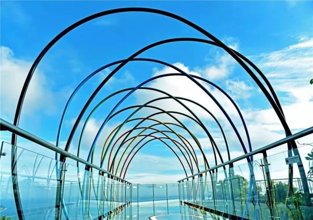 它是全國(guó)首條全海景玻璃棧道,棧道包括凌空臺(tái)、七彩天梯、彩蓮?fù)鹋_(tái)、彩虹之路、山盟海誓及心心相印等景點(diǎn),驚險(xiǎn)刺激之余,游人可360°無死角感受亞龍灣的美景。