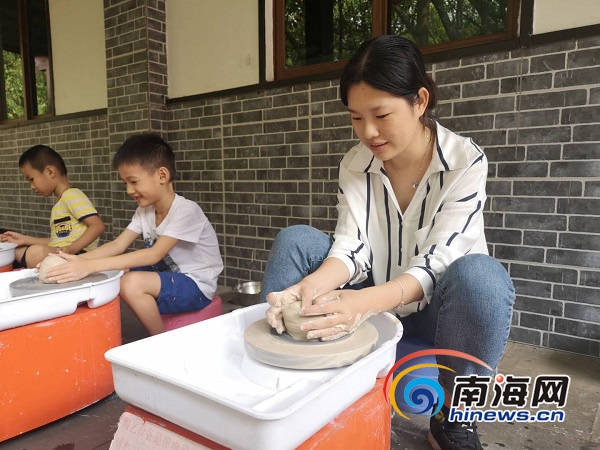 馮塘綠園內游客自制土陶。南海網記者 蘇靚 攝
