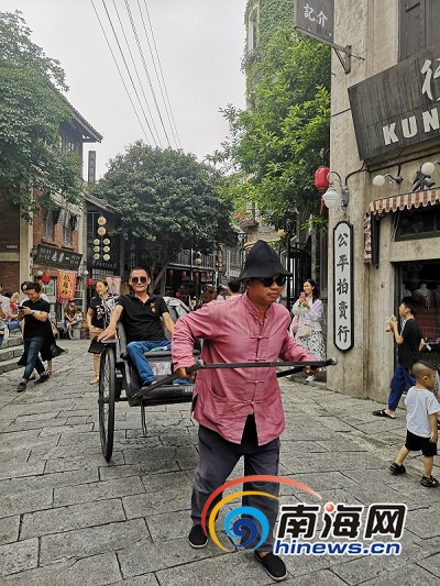 馮小剛電影公社里體驗“黃包車”的游客。南海網記者 蘇靚 攝