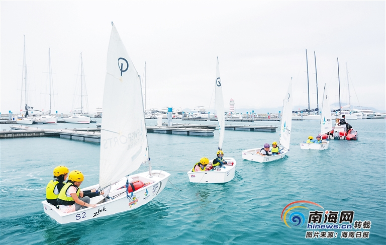 三亞半山半島帆船港附近海域,孩子們在學習操作帆船。海南日報記者 武威 通訊員 董香云 攝