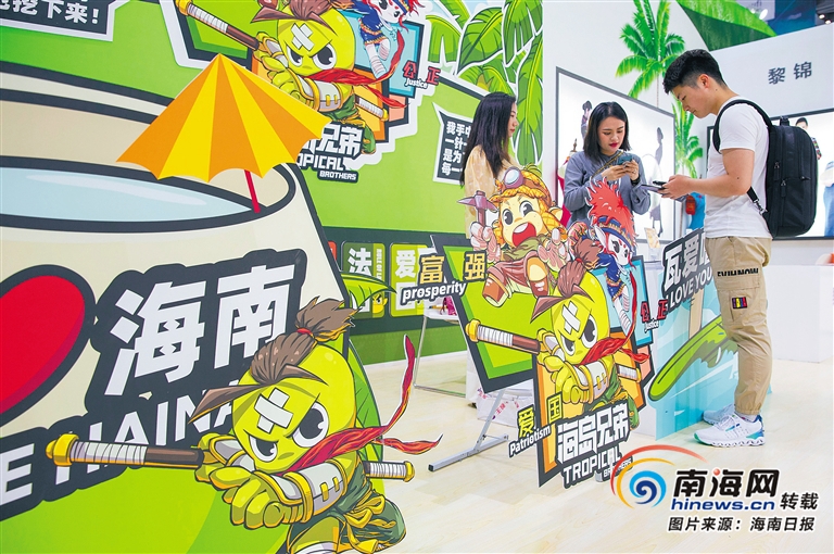 5月16日,第十五屆中國(深圳)國際文化產(chǎn)業(yè)博覽交易會(huì)開幕。圖為在海南展館內(nèi),以“海島兄弟”命名、專注于文旅和文農(nóng)產(chǎn)業(yè)服務(wù)的海南本土動(dòng)漫品牌公司工作人員向參觀者介紹相關(guān)情況。 海南日報(bào)記者 宋國強(qiáng) 攝