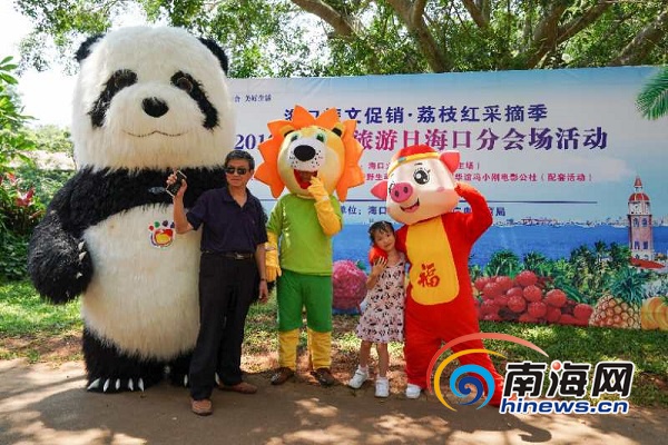 游客與動(dòng)物玩偶互動(dòng)合影。海口市旅文局供圖
