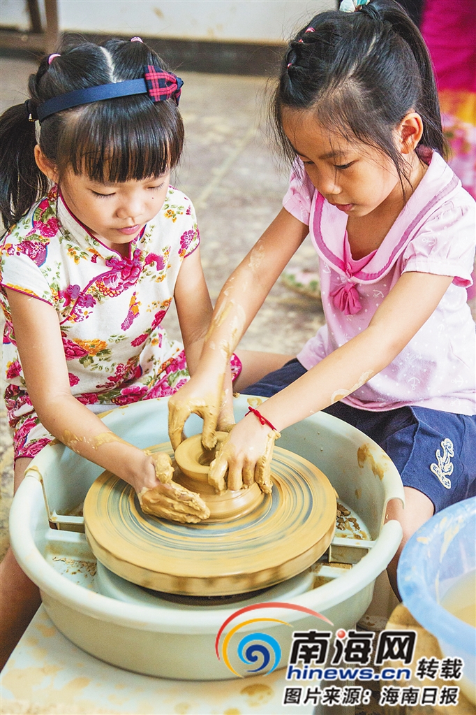 福山咖啡風(fēng)情小鎮(zhèn),孩子們?cè)隗w驗(yàn)制陶。海南日?qǐng)?bào)記者 李幸璜 攝