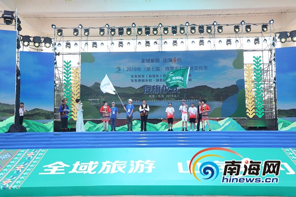 領導嘉賓為房車代表和騎友授旗。南海網(wǎng)記者 李昊 攝