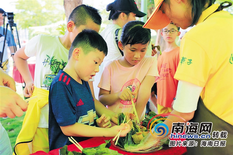 小朋友在定安粽子海口展銷會上品嘗定安粽子。