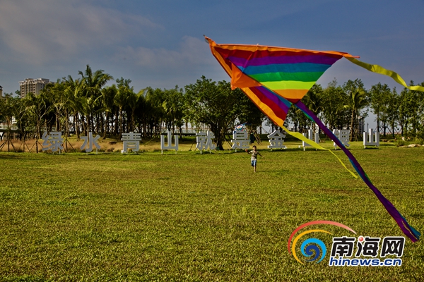 美舍河濕地公園放風箏的孩子們。安永明 攝