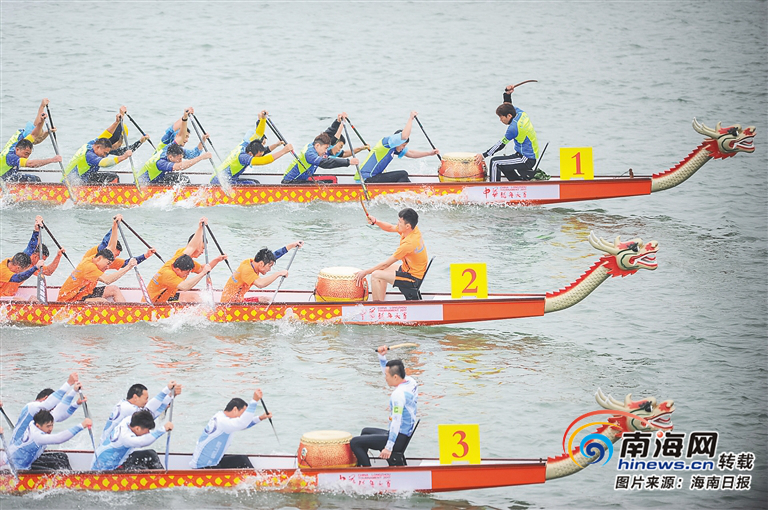 賽龍舟是端午節的一項重要活動,古時盛行于吳、越、楚,現在我國南方沿海一帶十分流行。傳出國外后,深受各國人民的喜愛并形成了國際比賽。在海南,每年端午前夕,澄邁金江鎮南渡江、三亞市崖州區、萬寧的港北港以及文昌市等地都會舉辦龍舟賽。
